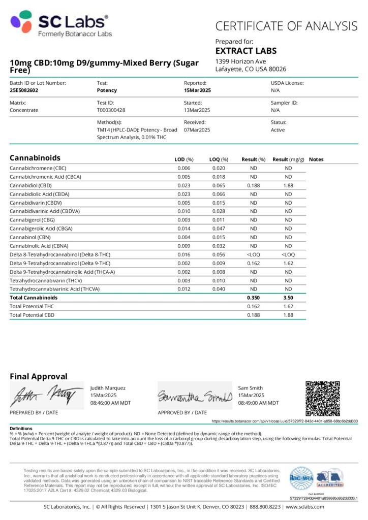 Gummies- 10mg CBD:10mg D9/gummy-Mixed Berry (Sugar Free)