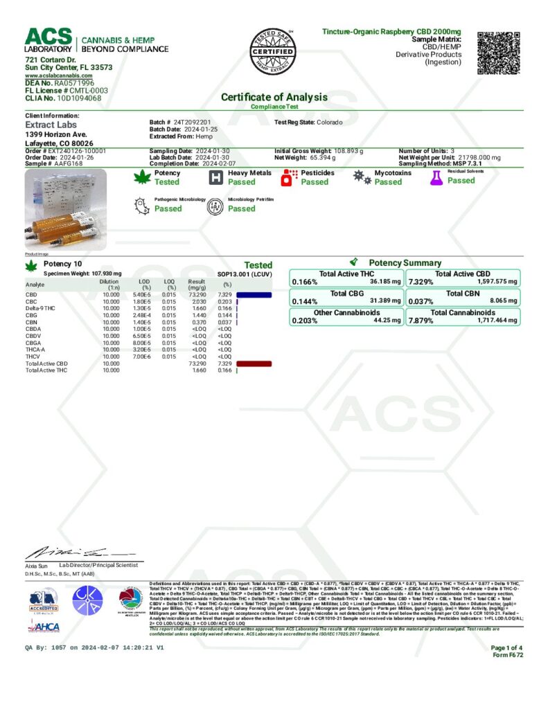 Tincture-Organic Raspberry CBD 2000mg