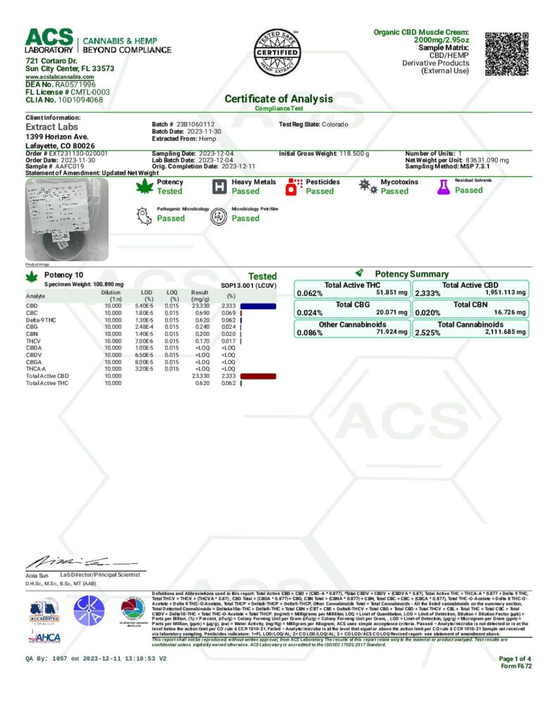 Organic CBD Muscle Cream: 2000mg/2.95oz