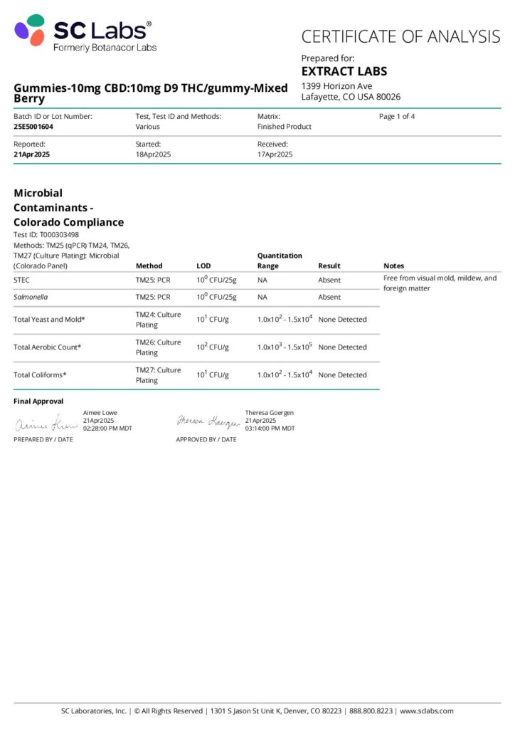 Gummies-10mg CBD:10mg D9 THC/gummy-Mixed Berry
