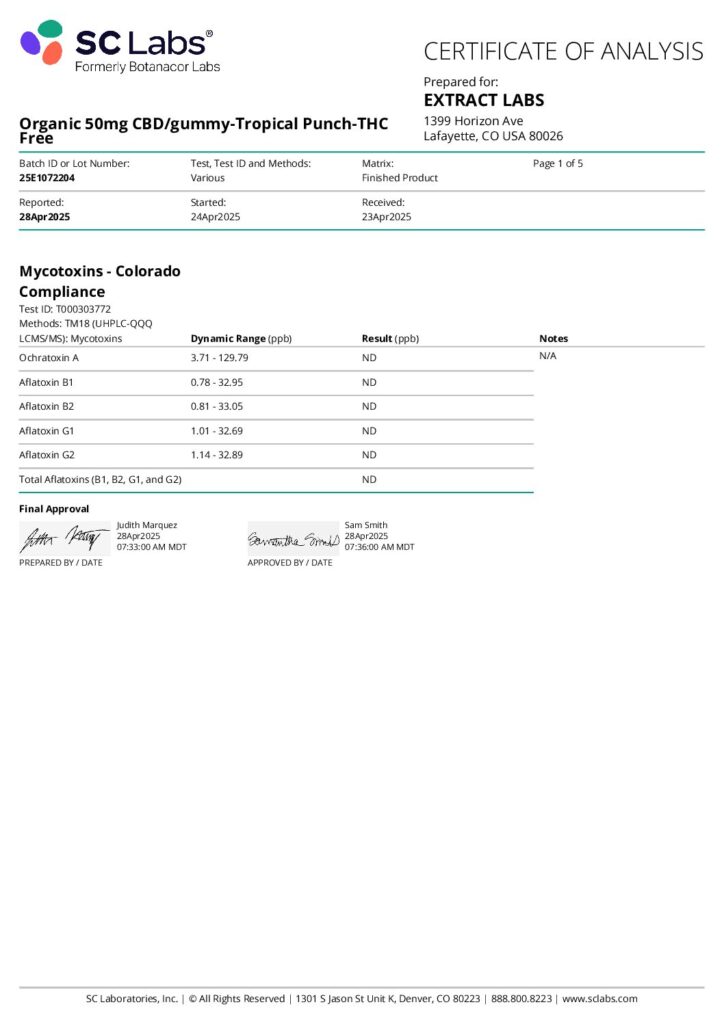 Organic 50mg CBD/gummy-Tropical Punch-THC Free